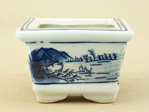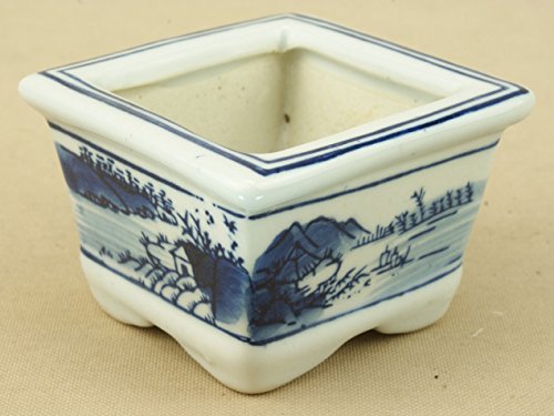 【盆栽鉢】 呉須山水絵 正角鉢 ミニサイズ(小)