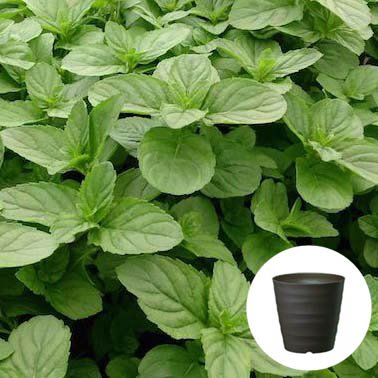 イエルバブエナ ミント 栽培 セット/ハーブ / 軽量 プラスチック 鉢 プランター/ダークブラウン