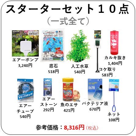 - <スターターセットについて> おうち菜園が推奨するアクアスプラウトSVのための備品をスターターセットにまとめたお得な10点セット(4点セットもあります)。何を買ったらよいか分からない方には、特におすすめです。※商品には同梱されません。別売となります。