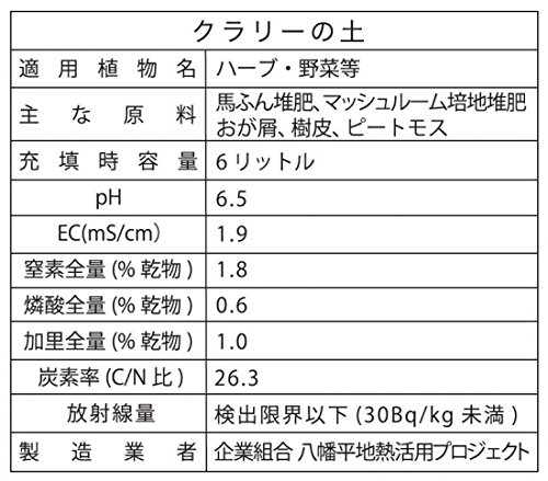 クラリーの土 6 L/ハーブ 野菜 バラ がよく育つ/有機 オーガニック 馬ふん 培養土 堆肥