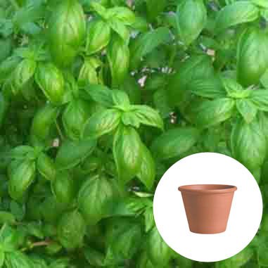 スイート バジル 栽培 セット / ハーブ / テラコッタ 鉢 プランター / 鉢受皿 付