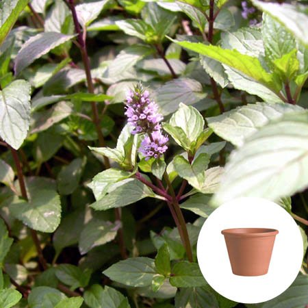 ペパーミント 栽培 セット/ハーブ / テラコッタ 鉢 プランター/鉢受皿 付