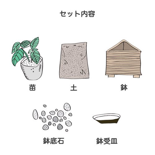 - <同梱物>苗(1株)、土(6L)、鉢(1鉢)、鉢底石(1L)、鉢受皿(1枚)、鉢底ネット(1枚)