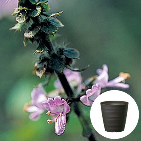 ホーリー バジル / トゥルシー 栽培 セット / ハーブ / 軽量 プラスチック 鉢 プランター / ダークブラウン