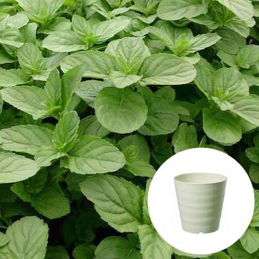イエルバブエナ ミント 栽培 セット/ハーブ / 軽量 プラスチック 鉢 プランター/アイボリー