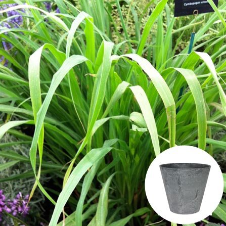 レモングラス 栽培 セット / ハーブ / アートストーン 鉢 プランター / 貯水機能 付 / グレー