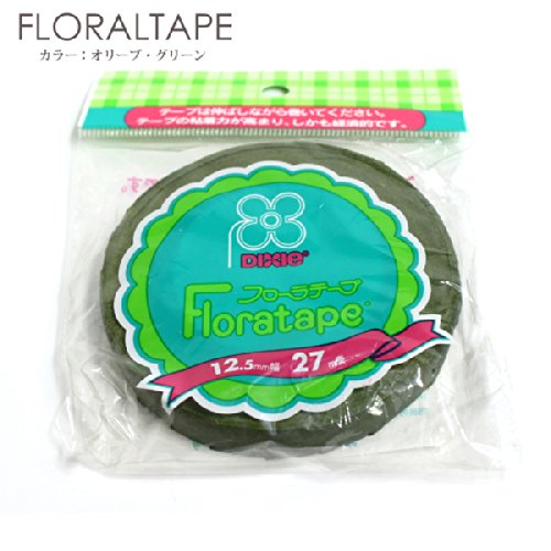 フローラテープ 12.5mm 1個 プリザーブドフラワー 資材 花材 用品 (オリーブグリーン)