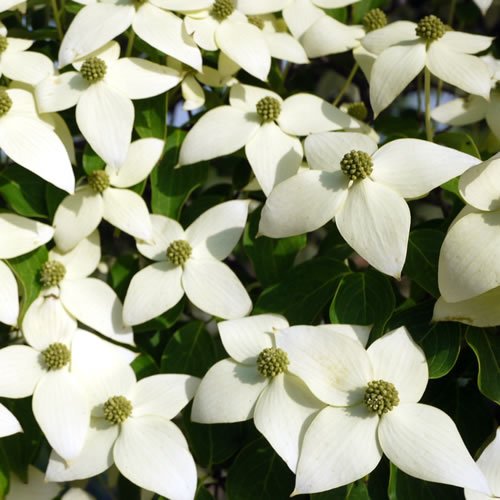 - 常緑ヤマボウシ ホンコンエンシス 月光の特徴は大変花付きが良く、オフホワイトの花を枝一面に咲かせます。