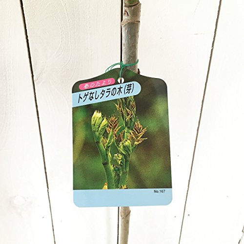 - 山菜の王様と言われるタラの木のトゲ無し品種です。新芽(たらの芽)の部分を山菜として食用となり、ほのかな苦みや、もっちりした食感が春を伝える食材として人気があります。