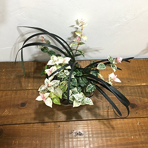 苔玉 ハツユキカズラと黒竜の苔玉は、暑さ、寒さに強く育てやすいです。新芽はピンク色ですが、段々と斑入りの白い葉に変化ます。秋には紅葉も楽しめるつる性の植物なのが特徴です。苔玉の育て方 苔玉の育て方のポイントは、何と言っても水やりタイミング! ・目で見て苔が白っぽく乾燥している。 ・苔を触ってみてカサカサしている。 ・苔玉を持ち上げたら軽い! 上記のような状態でしたら、水やりを行ってください。 水やりの方法 苔玉の中まで、水がしっかり届くように水の中につけ、沈んだら水やりOKです。 苔玉を取り出したらかるく水を切ってお皿に戻します。 常に水を含んでいるより、乾いてから水を与える様にして下さい。 苔玉の置き場所 日光に当たることによって緑色のふかふかした苔に成長していくので、日光がよく当たる室内の窓辺に置いて下さい。 また、時々窓を開けて風に当ててあげるとより元気に育ちます。 2~3日ごとに屋外に出して外の空気に触れさせもOKです。 苔玉のサイズ:9-15cm 高さ:15-25cm ※全品皿付き ※写真は参考写真(見本)になります。 ※植物ですので多少の個体差があります。時期によって画像にある花や実、葉は付いてない場合があります。
