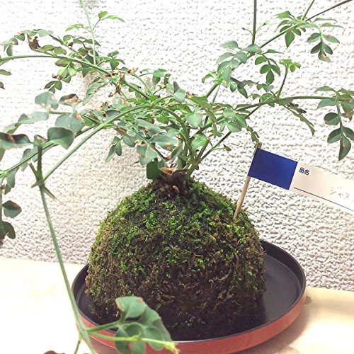 苔玉 ジャスミン ジャスミンは常緑のつる性低木で、花期は3月~5月と7月~11月です。香りがとても良く、「香りの王様」とも呼ばれます。夜に花を咲かせる為、明け方に収穫され、香水やジャスミン茶の原料にも使用されています。 苔玉の育て方 苔玉の育て方のポイントは、何と言っても水やりタイミング! ・目で見て苔が白っぽく乾燥している。 ・苔を触ってみてカサカサしている。 ・苔玉を持ち上げたら軽い! 上記のような状態でしたら、水やりを行ってください。 水やりの方法 苔玉の中まで、水がしっかり届くように水の中につけ、沈んだら水やりOKです。 苔玉を取り出したらかるく水を切ってお皿に戻します。 常に水を含んでいるより、乾いてから水を与える様にして下さい。 苔玉の置き場所 日光に当たることによって緑色のふかふかした苔に成長していくので、日光がよく当たる室内の窓辺に置いて下さい。 また、時々窓を開けて風に当ててあげるとより元気に育ちます。 2~3日ごとに屋外に出して外の空気に触れさせもOKです。 苔玉のサイズ:9-15cm 高さ:15-25cm ※全品皿付き ※写真は参考写真(見本)になります。 ※植物ですので多少の個体差があります。時期によって画像にある花や実、葉は付いてない場合があります。