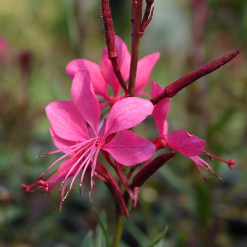 - 白蝶草(ガウラ)の穂状に咲く小花が風に揺れる様子は、蝶が群れて飛んでいるようです。