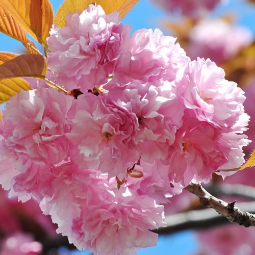 - 関山(カンザン) サクラは、八重桜の代表的品種で欧米でも広く植えられている遅咲きの桜です。花持ちも良く長い期間楽しむことができます。また、花の塩漬けは桜湯として用いられます。