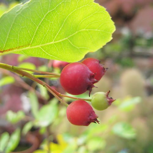 - 和名はアメリカザイフリボクですが、6月頃に収穫するので欧米ではジューンベリーと呼ばれています。ベリーとは名がつきますが、木いちごの仲間ではなく、リンゴを小さくしたような実です。