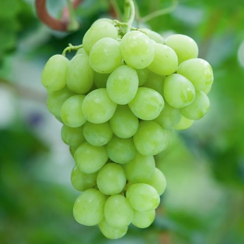 ぶどう 苗木 ロザリオビアンコ 12cmポット苗 ブドウ苗 葡萄 ロザリオビアンコは「ロザキ」に「マスカット・オブ・アレキサンドリア」を交配し生まれた白ブドウ品種です。 果粒は一粒8~15gと大きく、倒卵形で、果皮の色は明るい黄緑色をしていて、やや厚みがあり、果肉としっかりと付いているため皮が比較的むきにくいブドウです。 果肉は透明感のある黄緑色で、やや締りがある崩壊性で、口に入れたときにしっかりと存在感が感じられます。噛むと果汁が滴るようにあふれ、甘みが強い割りに酸味が少なく、糖度の割りにまろやかな甘みを感じます。 自家受粉しますので、1本で実がつきます。 庭植え、または鉢植えでも楽しめます。 【葡萄】ロザリオビアンコは接木苗です。 ぶどうは過湿を嫌いますので、水はけの良い場所に植えてください。もちろん鉢植えでも育ちます。 水やりは乾いたらあげる程度です。地植えの場合は、真夏に何日か雨が降らない場合以外は、ほとんど必要ありません。 収穫時期:9月中旬~10月上旬 最終樹高:2~2.5m 植栽適地:北海道~沖縄 ※写真は参考写真(見本)になります。 ※植物ですので多少の個体差があります。 時期によっては花や実、葉は付いてない場合があります。