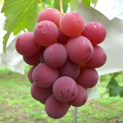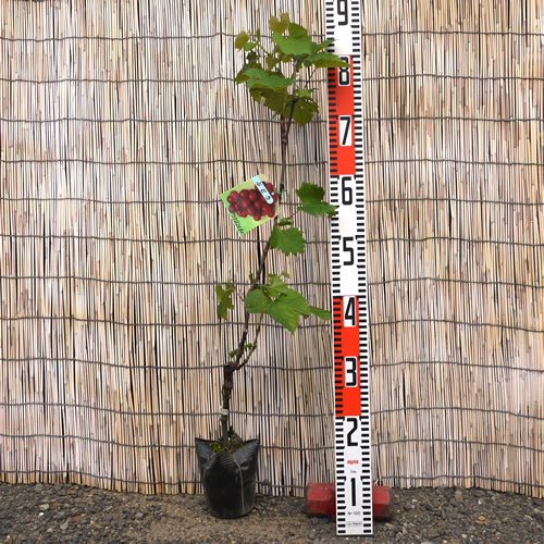 ぶどう 苗木 シナノスマイル 12cmポット苗 ブドウ苗 葡萄 シナノスマイルは「高墨」の自然交雑実生から誕生した大変甘い赤ブドウです。 巨峰や、ピオーネよりも、甘く酸味が少く、種が少しありますが、どなたでも食べやすいぶどうです。 果粒はとても大粒でほぼ綺麗な球形をしている物が多く、大粒の「巨峰」と同じくらいです。果皮は赤くやや厚みがありますが身離れはよく剥きやすいです。 シナノスマイルの果肉はとてもジューシーですがややしっかりしていて、とても甘く酸味とのバランスも良い感じです。糖度は18~20度とされています。 自家受粉しますので、1本で実がつきます。 庭植え、または鉢植えでも楽しめます。 【葡萄】シナノスマイルは接木苗です。 ぶどうは過湿を嫌いますので、水はけの良い場所に植えてください。もちろん鉢植えでも育ちます。 水やりは乾いたらあげる程度です。地植えの場合は、真夏に何日か雨が降らない場合以外は、ほとんど必要ありません。 収穫時期:8月下旬~9月上旬 最終樹高:2~2.5m 植栽適地:北海道~沖縄 ※写真は参考写真(見本)になります。 ※植物ですので多少の個体差があります。 時期によっては花や実、葉は付いてない場合があります。