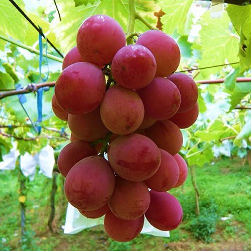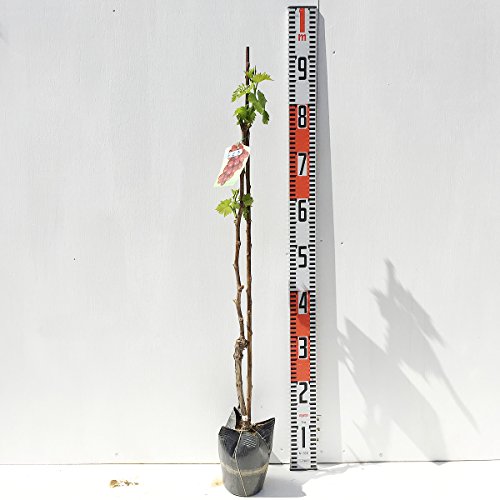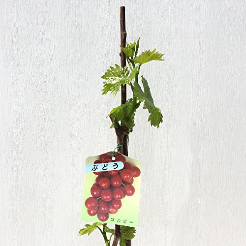 ぶどう 苗木 ゴルビー 12cmポット苗 ブドウ苗 葡萄 ゴルビーはレッドクイーンと伊豆錦の交配種で、希少価値の高い、なかなか一般的に店頭に並んでない葡萄品種です。 外見は、安芸クイーンにも似て、ワインレッドの色合いが美しく、食べる美味しさだけでなく、見て楽しむこともできます。 実は大粒で、大きいものだと一粒20g以上になり、味は葡萄の中でも糖度が高く、ジューシーで濃厚な甘みがあります。種もなく食べやすいのが特長です。 自家受粉しますので、1本で実がつきます。 庭植え、または鉢植えでも楽しめます。 【葡萄】ゴルビーは接木苗です。 ぶどうは過湿を嫌いますので、水はけの良い場所に植えてください。もちろん鉢植えでも育ちます。 水やりは乾いたらあげる程度です。地植えの場合は、真夏に何日か雨が降らない場合以外は、ほとんど必要ありません。 収穫時期:8月上旬~9月上旬 最終樹高:2~2.5m 植栽適地:青森~沖縄 ※写真は参考写真(見本)になります。 ※植物ですので多少の個体差があります。 時期によっては花や実、葉は付いてない場合があります。