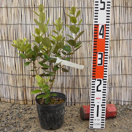 フェイジョア クーリッジ 13.5cmポット 3年生苗 フェイジョア クーリッジは、1本でも実がなる人気の品種です。また、受粉樹としても最適です。 大玉品種で、香り質ともによい品種です。 フェイジョアは、別名、パイナップルグアバとも呼び、果実はパイナップルとバナナとリンゴを混ぜたような味で甘い香りを漂わせます。食べるとキウイフルーツよりも甘くて美味しいと、ここ数年、人気のある果樹です。また、エキゾチックで美しい華やかな花も食用に利用できます。 常緑の樹で、光沢のある緑色の葉っぱも見応えがあるので、庭木、シンボルツリーとしてもおすすめです。また、生垣用にとしても最適です。 また、耐寒性、耐乾性があり、害虫にも強く、水はけの良い土壌であれば土質は特に選ばないので初心者にもおすすめです。 開花時期:11月頃 樹高:3m~5m 栽培適地:新潟県・福島県~沖縄 ※写真は参考写真(見本)になります。 ※植物ですので多少の個体差があります。 時期によっては花や実、葉は付いてない場合があります。