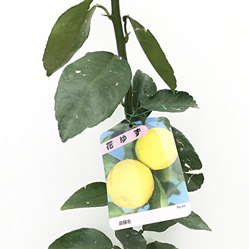 ゆず 苗木 花柚子 13.5cmポット苗 はなゆず ユズ 苗 柚子 花ユズは、一才柚子(いっさいゆず)とも呼ばれ、1年目で実がなりやすい品種です。 ◆実付きがよく、育てやすい品種です◆ 果重40g位で実は小ぶり、また本柚子より香りは弱いですが、実付きが良いのが特徴です。果汁も多く、料理の付け合わせやジャムなどにもできます。 柚子の耐寒性は、柑橘類で最も強く、丈夫で作りやすいのも特徴です。隔年結果も出にくく、毎年一定の収穫が見込めます。 樹そのものもそれほど高くならないので、本柚子よりも取り扱いがしやすく、鉢植えの観賞用にも適しています。 柚子風呂、料理にも使えます。1本で実がなり育てやすい柚子(ユズ)です。 ◆育て方◆ 植え付けは3~4月が適期です。庭植え、鉢植えともに日当たりが良く、水はけの良いところを選んでください。 鉢植えの場合は、鉢土の表面が白く乾いたら、鉢底の穴から少し水が流れるくらいたっぷり与えます。夏に水やりすると、夏枝をよく成長させることができます。 3月と10月に肥料をやってください。鉢植えの場合は、それに加えて6月ごろにも一度施肥します。 鉢植えの場合は2年に一度くらい植え替えをして成長を促し、根詰まりを防ぎます。 果実が熟すのを待つ必要はありません。順次使ってゆくと長い期間楽しむことができます。 収穫時期:9~12月 樹高:2~4m 栽培適地:新潟・福島~九州 ※写真は参考写真(見本)になります ※植物ですので多少の個体差があります。時期によっては花や実、葉は付いてない場合があります。