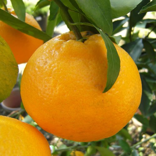みかん 苗木 はるみ 13.5cmポット苗 (PVP) ミカン苗 はるみは、清見とポンカンを交配して育成された品種で、1本で結実します。実は皮が薄くむきやすく、房ごと食べられます。また、プチプチと弾ける大粒果肉は、 甘くて果汁がたっぷりで、ポンカン系の非常に爽やかな味わいをお楽しみいただけます。 爽やかな風味で人気が高く、品質は極めて優良で、果重300gくらいで果形はポンカンに似ています。 栽培方法: 3~4月ごろが植え付け適期ですが、6月中旬まで大丈夫です。暖地では秋~冬でも植えられますが、寒さよけをした方が良いでしょう。日当たりと排水のよい場所で育てましょう。強い風や潮風があたらないように注意します。鉢植えの場合は、根が寒害を受けないよう、冬季は2重鉢にするなどして保護してください。 収穫時期:12月 最終樹高:2~2.5m 植栽適地:暖地向き(冬季-5度以下にならない地域) ※写真は参考写真(見本)になります ※植物ですので多少の個体差があります。時期によっては花や実、葉は付いてない場合があります。