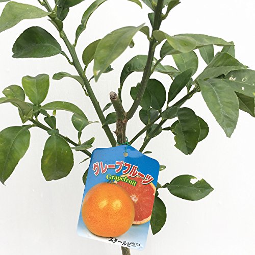 グレープフルーツ 苗木 スタールビー 13.5cmポット苗 グレープフルーツ 苗 スタールビーは、やや濃いオレンジ色の皮に、部分的に赤味が濃い部分が混じったような感じで、中の果肉は濃いルビー色をしています。 ◆育て方◆ スタールビーは寒さに弱く、栽培に長い時間がかかるので根気が必要です。 植え付けは3~4月が適期です。植えた後、支柱で支えてください。日当たりと水はけの良い場所を選んでください。 寒い季節には寒冷紗などで覆いをしてください。雪や霜が降りる場所では、移動させやすいように鉢植え、あるいはハウスの中で育てることをお勧めします。 鉢植えの場合、土の表面が乾いたら鉢の底から水が少し流れ出るくらいまで水やりします。夏の暑い時期にはもう少し頻繁に水やりが必要です。庭植えの場合は、日照りが続く場合を除いて特に水をやる必要はありません。土がずっと湿っているとかえって根腐れの可能性があります。 いったん根が張ると上へとどんどん成長してゆきます。 4~10月くらいまで、2ヶ月ごとに固形肥料を与え、必要に応じて週に一度くらい液体肥料を与えます。 1本でも結実しますが、他の柑橘類の花粉で受粉させたり、自家受粉させた方がより実がなりやすいでしょう。 6~7月くらいに必要に応じて(葉100枚に一つくらい)摘果します。 苗木にはトゲがありますので、ご注意ください。 開花時期:5月 収穫時期:2~3月 最終樹高:2~4m 栽培適地:関東~九州 ※写真は参考写真(見本)になります。 ※植物ですので多少の個体差があります。 時期によっては花や実、葉は付いてない場合があります。