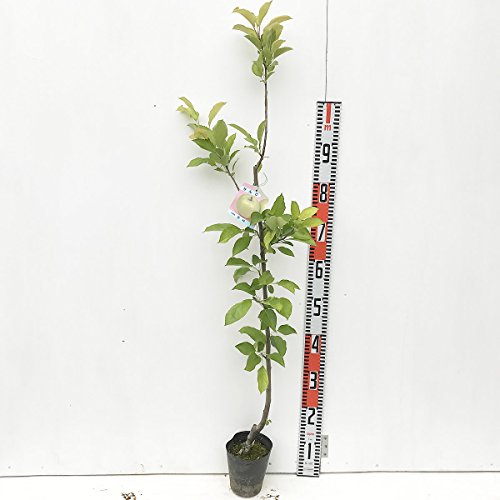 リンゴ 苗木 王林 12cmポット苗 おうりん りんご 苗 林檎 王林は、果実は250~300g前後、果皮は黄緑色、果肉は緻密です。酸味は少なく、甘味は強めで、独特の風味がある林檎です。口当たりがさわやかで、後味もすっきりしています。サビが入ることがありますが、そういったリンゴの方が甘みが強いことが多いです。 ◆育て方◆ 病害虫対策をしっかりすることがカギです。病気になった葉・花・枝・落ち葉などを素早く処理することが大切です。害虫を駆除するために薬剤を散布することも必要です。 リンゴは寒さに強い植物で、マイナス20~30度くらいの寒さにも耐えることができます。一方夏の暑さには弱いので、植え付けの際、西日の当たる暑い場所は避けた方がよいでしょう。 寒い時期を経験しないと休眠から覚醒しないため、一年中温暖な沖縄地方での栽培は難しいと言われています。 植え付け適期は11月から3月ですが、厳冬期は避けた方がよいでしょう。水はけの良い場所を選んでください。植え付ける際には緩効性の肥料を混ぜ込みます。その後は、年二回、冬期と9月ごろに施肥します。 庭植えの場合、真夏の日照りが続くとき以外、特に水やりは必要ありません。 自家結実性がないので、異なる品種を近くに植えるか、人工授粉をおこなうことをお勧めします。受粉樹を植える場合、津軽、富士、世界一、紅玉、千秋などを混植してください。 収穫時期:9~10月 最終樹高:2.5~3m以上 栽培適地:北海道~沖縄 ※写真は参考写真(見本)になります ※植物ですので多少の個体差があります。時期によっては花や実、葉は付いてない場合があります。