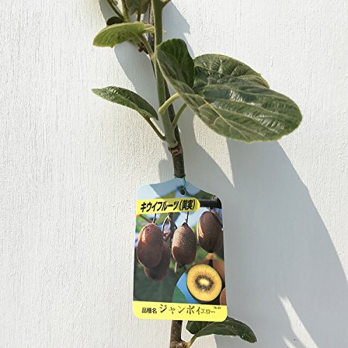 キウイ 苗木 ジャンボイエロー 12cmポット苗(黄実メス) キウイ苗 ジャンボイエローは、糖度が15~16度と甘く、たいへんジューシーな品種です。ビタミンC、Eや酵素も2倍含まれています。果実は200グラム前後と、普通の果実の約2倍もあります。1本で結実しませんので、受粉樹としては孫悟空を近くに植えてください。 キウイの育て方 病害虫に強く、生育旺盛で花芽や果実がつきやすく、手間のかからないので、初心者にもオススメの果実です。 キウイにはオス・メスがあり、開花時期が合う品種を近くに植えてください。花粉を冷凍保存しておき、人工授粉させることも可能です。 秋~梅雨位までに植え付けします。キウイフルーツは、受精後の生理落果が少ないので、摘蕾・摘果をお勧めします。葉10~12枚の長果枝で3~4個、葉6~7枚の短果枝で2個ぐらいを目安に摘蕾します。 開花時期:5月 収穫時期:10~11月 最終樹高:3m 栽培適地:南東北~九州 ※写真は参考写真(見本)になります ※植物ですので多少の個体差があります。時期によっては花や実、葉は付いてない場合があります。