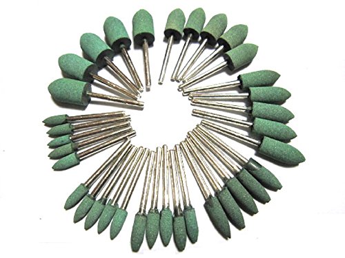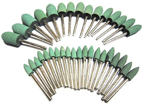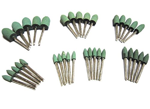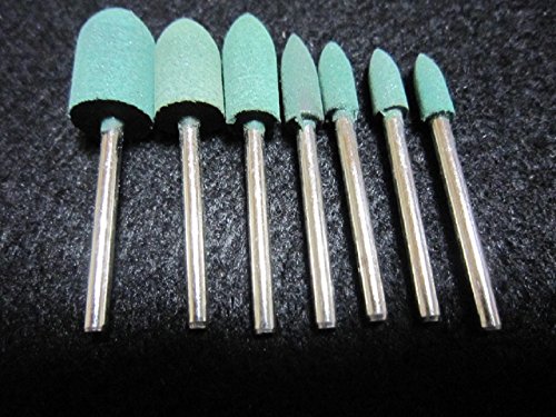 ゴム砥石 砲弾型 軸径3mm 7サイズ 各5本 合計 35本セット Φ 3mm 4mm 5mm 6mm 8mm 10mm 12mm 緑色