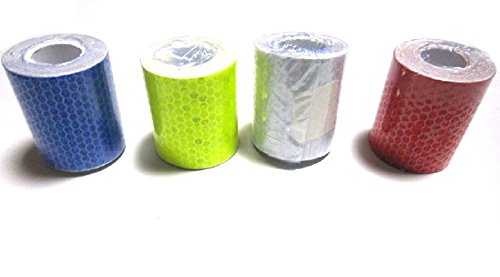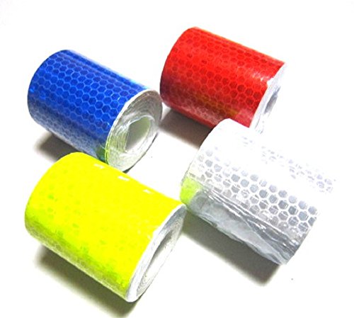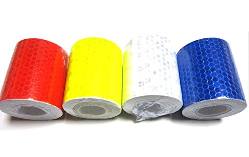 蛍光 反射テープ 高輝度 警告テープ 安全標識 ステッカー 事故防止 5cm×3m 自己接着 耐久性 防水 4本入 か 5本入り 白 赤 黄 青 金 (白・赤・金・藍)