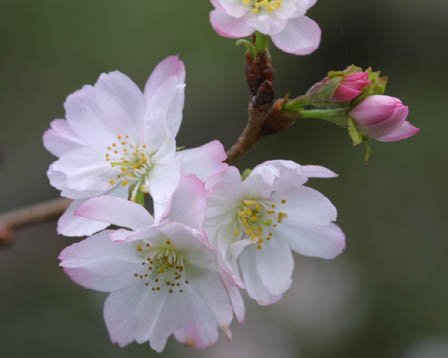 十月桜の開花は 二季咲きのサクラです サクラの開花 花弁は八重咲きです 花色うすピンク色 全体のつぼみの3分の1が10月頃から咲き、 残りの3分の2は春に咲く。 年2回咲いてくれる桜です。