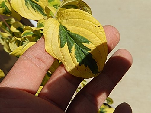 白花で葉に綺麗な黄色の斑が入る ハナミズキ