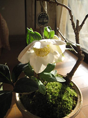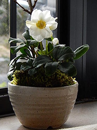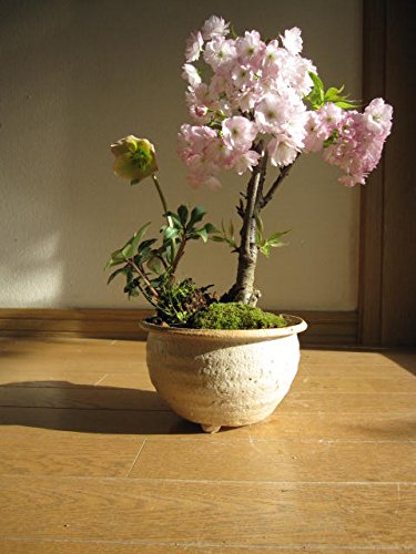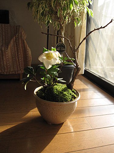 信楽鉢入り 高さ 30センチ前後 桜とクリスマスローズの寄せ植え クリスマスプレゼントにおすすめの 純白のクリスマスローズと桜盆栽の寄せ植え