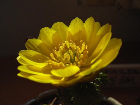 信楽の鉢に 豪華に 梅を主に 桜 福寿草と 季節の山野草が入った