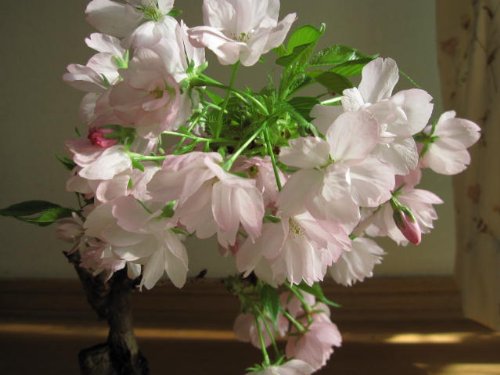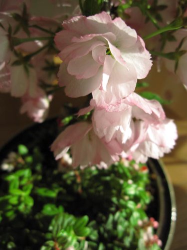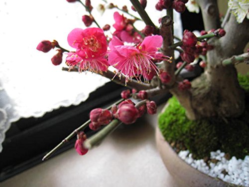 梅は一重の紅色 開花 2月 福寿草の開花 2月~3月 桜の開花 4月と 長い間 花が楽しめる福梅盆栽