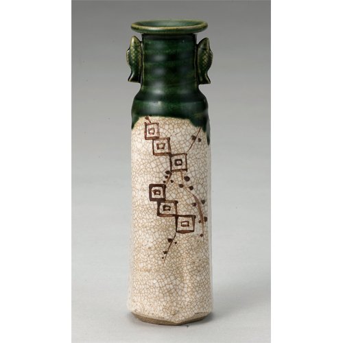 花入 織部鯉耳花入 置掛両用 加藤景陶 [約R6.5xH20.5cm] 茶道具 茶道 抹茶 華道