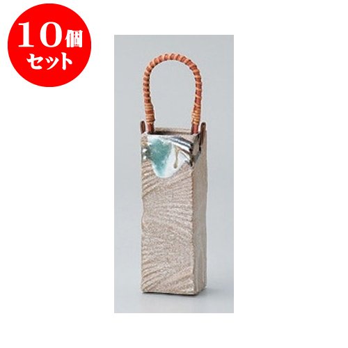 10個セット 美濃焼花瓶 砂地三彩ツル付角花瓶 [4.8 x 4.7 x 14.2cm] インテリア 縁起物 ギフト プレゼント