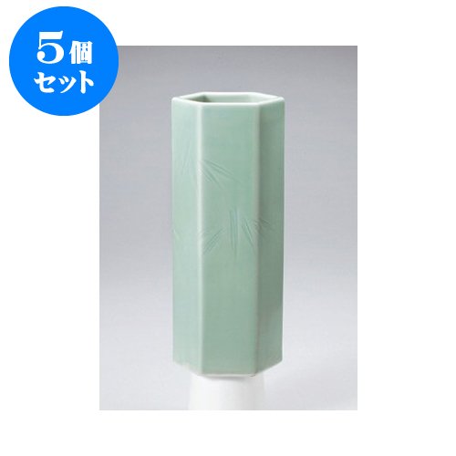 5個セット 花瓶 青磁笹彫六角ズンド10号 [12.3 x 29.7cm] インテリア 縁起物 ギフト プレゼント
