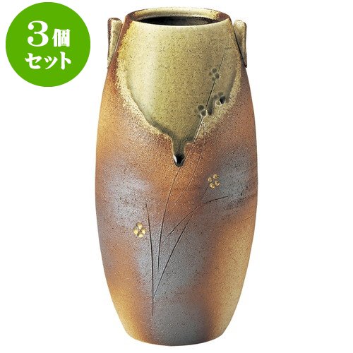 3個セット 花瓶 火色金彩長花入(信楽焼) [ 14 x 14 x 29cm ] 料亭 旅館 和食器 飲食店 業務用