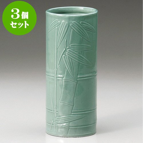 3個セット 花瓶 青磁竹彫10号投入 [ 12.4 x 28cm ] 料亭 旅館 和食器 飲食店 業務用