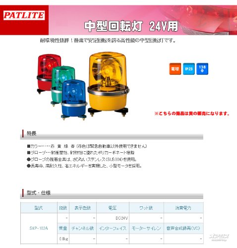 パトライト 24V黄 中型回転灯 SKP-102A-Y