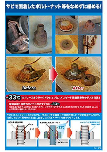 ●凍結収縮してサビを割るフリーズ&クラックアクションとハイスピード浸透潤滑剤のダブル効果により、
