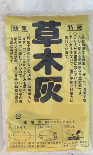 草木を焼却した際に出る燃焼灰をふるいにかけ、精製したカリ肥料で、しっかりした植物体を形成します。野菜・花木などの栽培用土のカリ分補給に、1坪(3.3m2)当たり500g位を施し、土と良く混ぜて使用します。