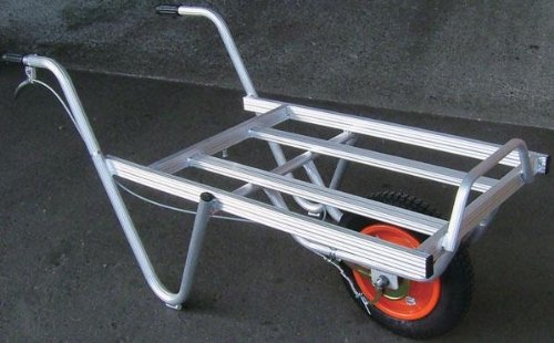 オールアルミ製・溶接仕上げで、軽くて丈夫!タイヤはスチール製タイヤを使用しています。