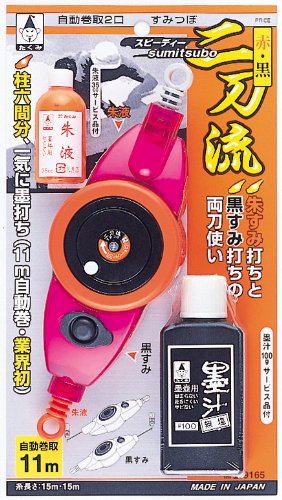●完全密閉型で一台二役のライン引きです。●糸長さ(m):15●自動巻取糸長さ(m):11●朱液35cc、墨汁100cc●原産国:日本●質量:225G