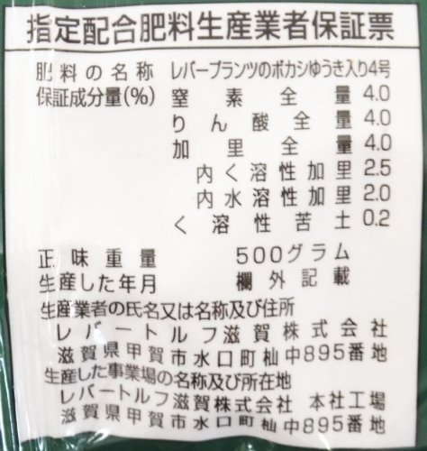 - レバープランツのボカシゆうき4号500g 土壌改良にも効果あり!お手軽に使えるオールマイティな有機肥料です。