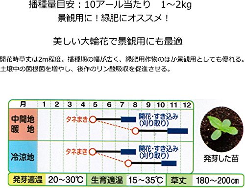 - 開花時草丈は2mほどになる。緑肥利用の場合は、草丈1.5mほどの頃にすきこむ。