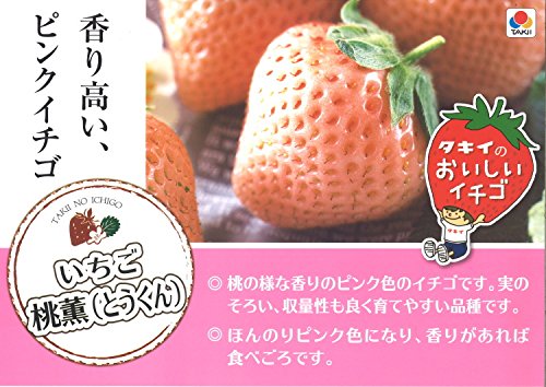 - 桃のような香りのピンク色のイチゴです。沢山収穫できて育てやすい品種です。