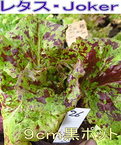レタス・Joker のオーガニック種子で育苗した苗です。 まだら模様の一風変わった斬新なレタスです☆ 直径は15-20cm、パリパリとした歯ごたえと風味のある葉が幾重にもこんもりと茂ります。 寒さにも暑さにも比較的耐性があり、春先、秋、冬と栽培できます。 エメラルドグリーンの葉にはワイン色の斑点がインクを飛ばしたように入り、色のコントラストがなんともうっとりするほどです。 プレートをゴージャスに飾るにふさわしい1枚です☆☆☆ 生育適温15~20℃涼しい気候を好みます。また、酸性土を嫌うので、あらかじめ苦土石灰を散布し、よく耕しておきます外葉生育期に土の水分や肥料分が足りないと成長が悪くなるので定期的に水やりと追肥を欠かさないようにしてください。また、日当たり、水はけのいい場所で育てること窒素少な目の元肥主体で初期成育を促します。