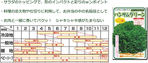 レタス類は高温長日期(気温が高くなり、日照時間が長くなる期間)には、花芽ができてトウ立ちしやすくなるので、家庭菜園では夏まき(秋どり)が育てやすい。外側の葉から順次、数枚程度をかきとりながら収穫をする。プランターで栽培する場合は、幅60cmのプランターで3~4株が目安。