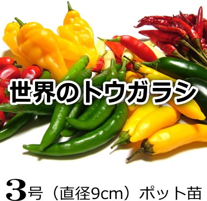 世界のペッパー(トウガラシ)3種セット(各1株 9cmポット苗)